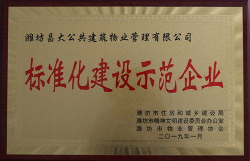 2019年1月被評為“標(biāo)準(zhǔn)化建設(shè)示范企業(yè)”