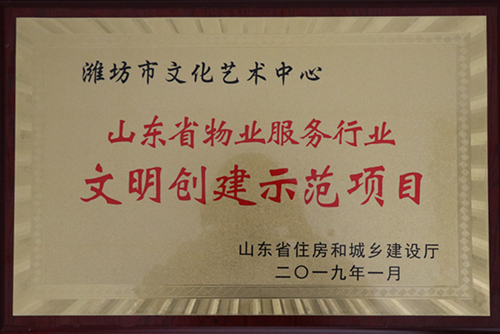 2019年1月濰坊市文化藝術(shù)中心物業(yè)管理項(xiàng)目被評為“山東省物業(yè)服務(wù)行業(yè)文明創(chuàng)建示范項(xiàng)目”